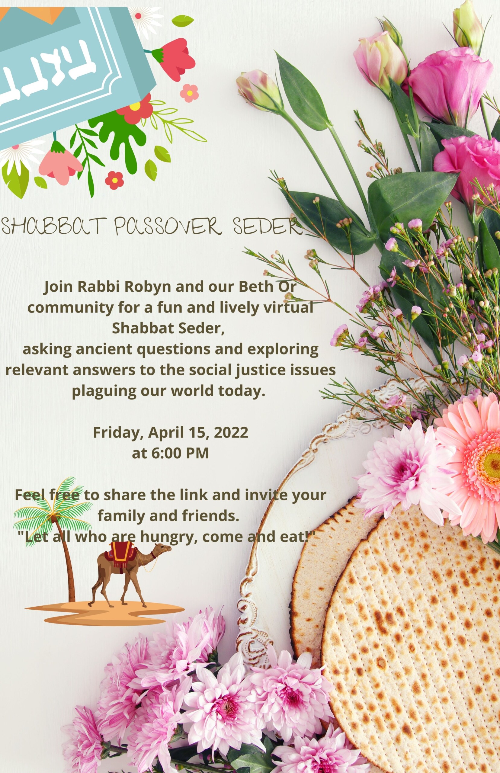 Beth Or, 11715 SW 87th Ave, Miami, FL 33176, USA 8901 SW 87th Ct, United StatesJoin Rabbi Robyn for a fun and lively virtual Shabbat Seder.